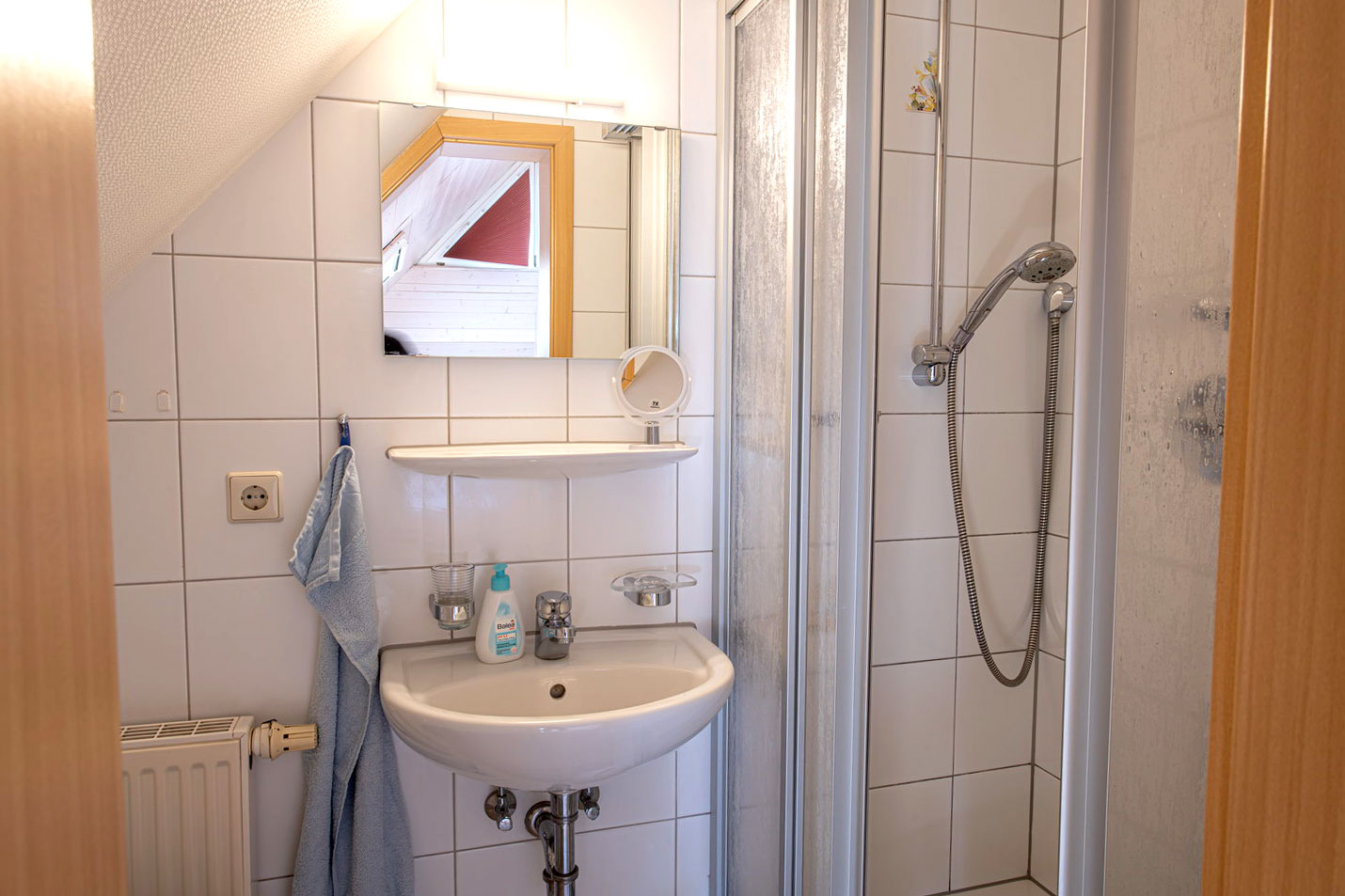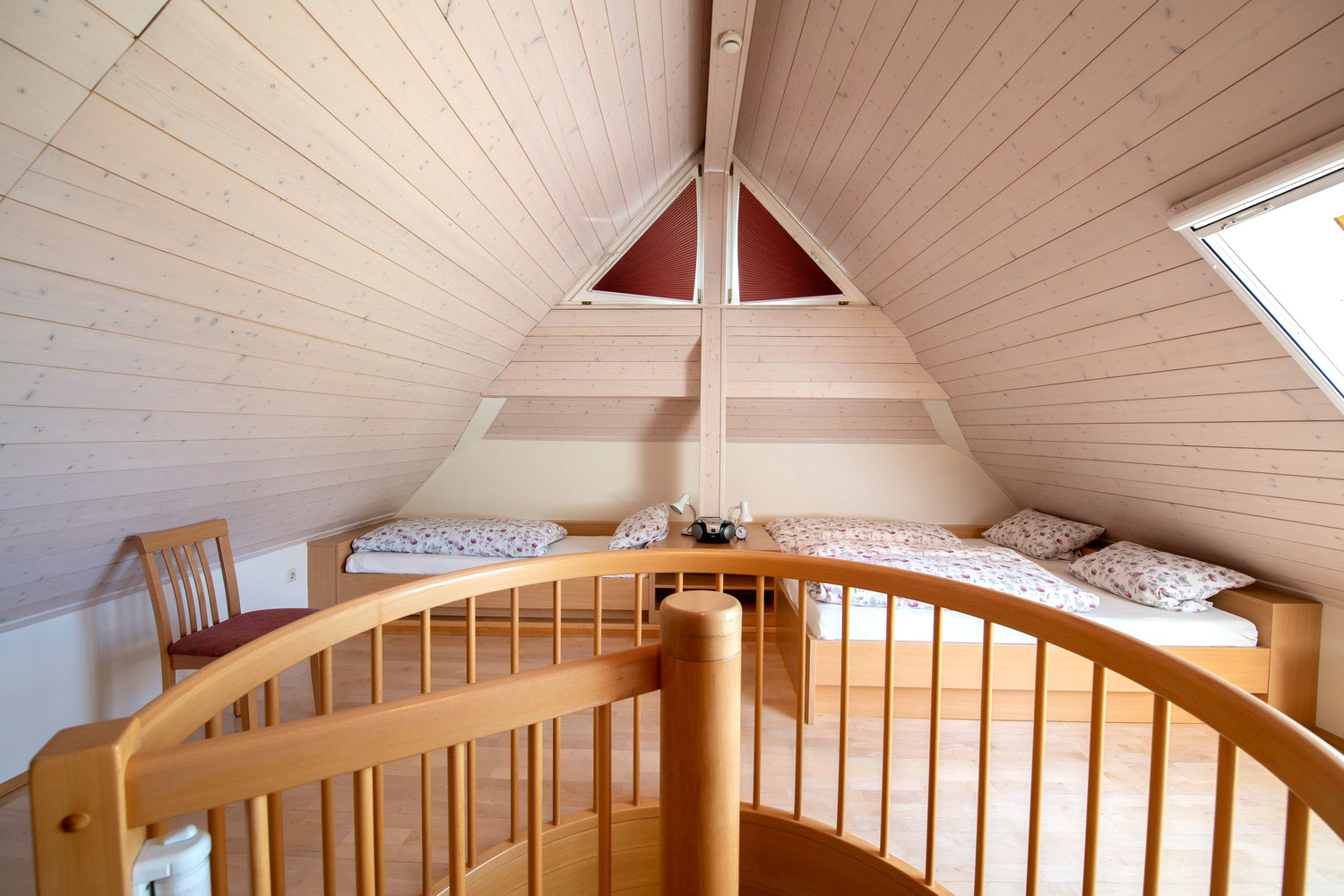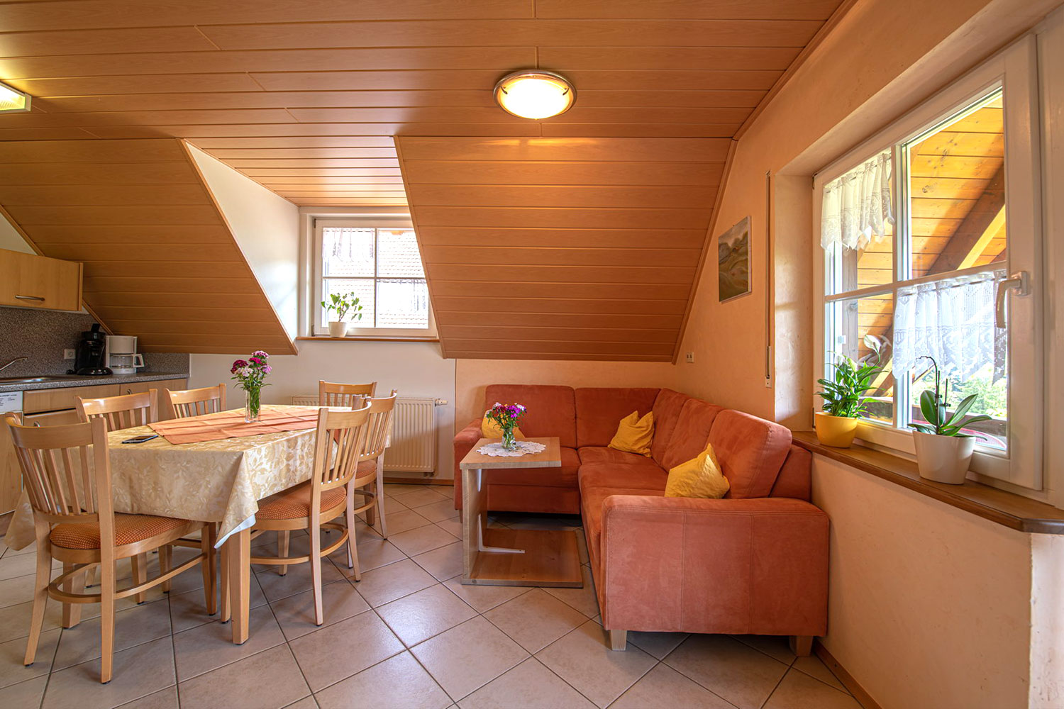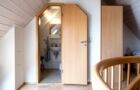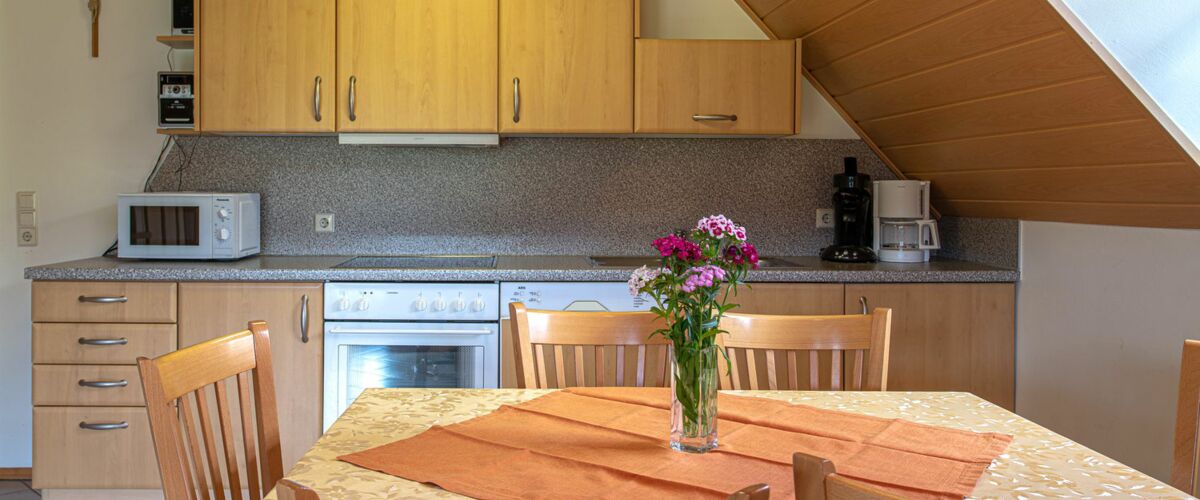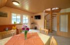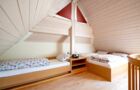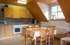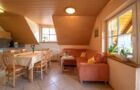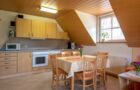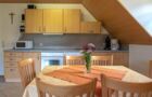 Zwei Stockwerke mit Dachstudio für 6 Personen, gemütliche Einbauküche mit Sitzecke, Doppelzimmer und 4-Bett-Zimmer jeweils mit DU/WC, SAT-TV, Tel., die Wohnung verfügt über einen großen Balkon.