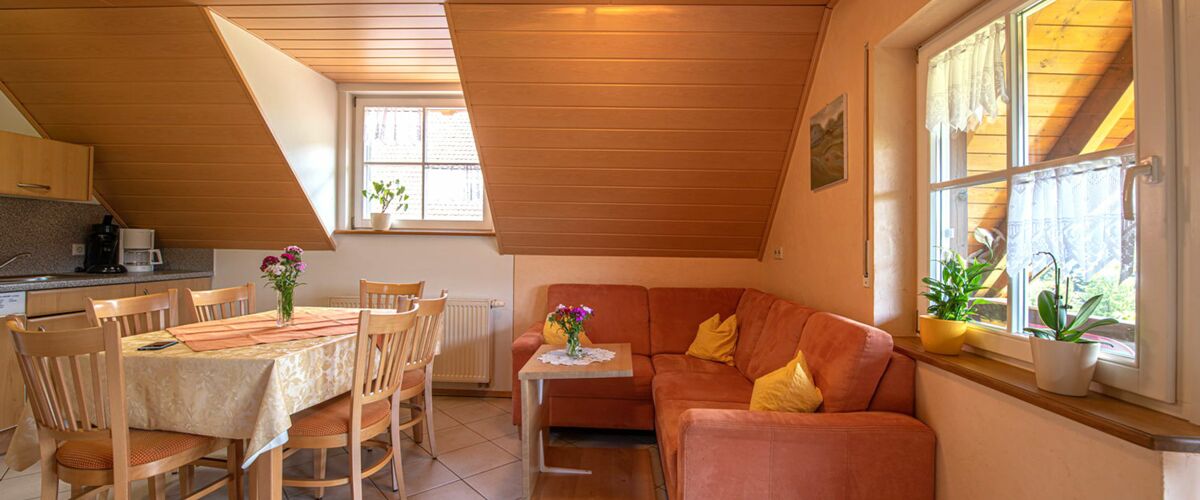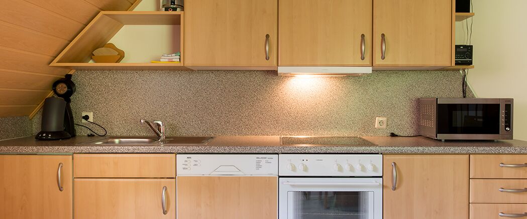 Alle Möbel aus hellem Buchenholz, separate, große Balkone in jeder Wohnung, komplett eingerichtete Küchen mit Essecke (Küche Panoramablick mit umgehbarem Herd), SAT-TV, Telefon, Waschmaschine im Treppenhaus, Zustellbetten/Kinderbetten nach Bedarf.