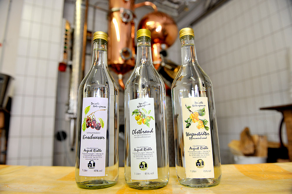 Während sich Rosi Riehle unter anderem um die Pflege und Reinigung der Ferienwohnungen kümmert, ist das große "Hobby" von August, das Schnapsbrennen. Hier entstehen, auch nach überlieferten Rezepten, edle "Wässerchen". Ob Kirschwasser, Obst-, Pflaume- oder Zwetschgenwasser, bei einer Schnapsprobe werden Sie bestimmt begeistert sein. Nebenbei wird Ihnen die Brennerei erklärt und Sie erfahren einiges über Brauchtum, Land und Leute. .....Na dann zum Wohle!